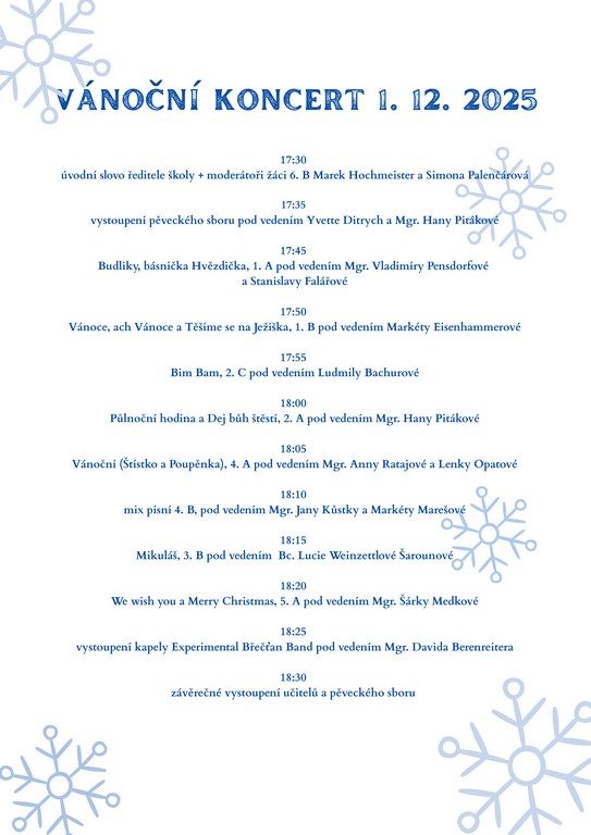 v pondělí 1. 12. 2025 od 17.30 h před pavilonem H na Vánoční koncert (program zde )