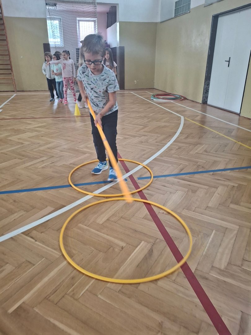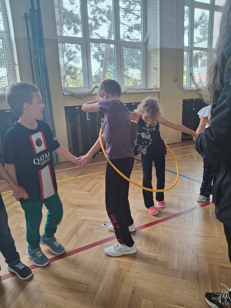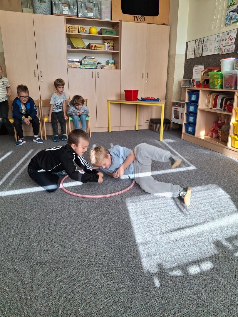 - soutěže v tělocvičně s obručemi a Sanitka (míčová hra)