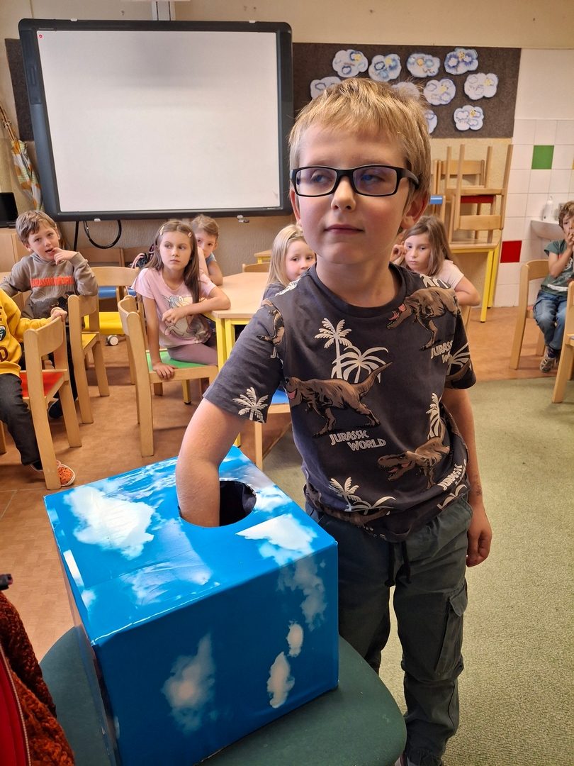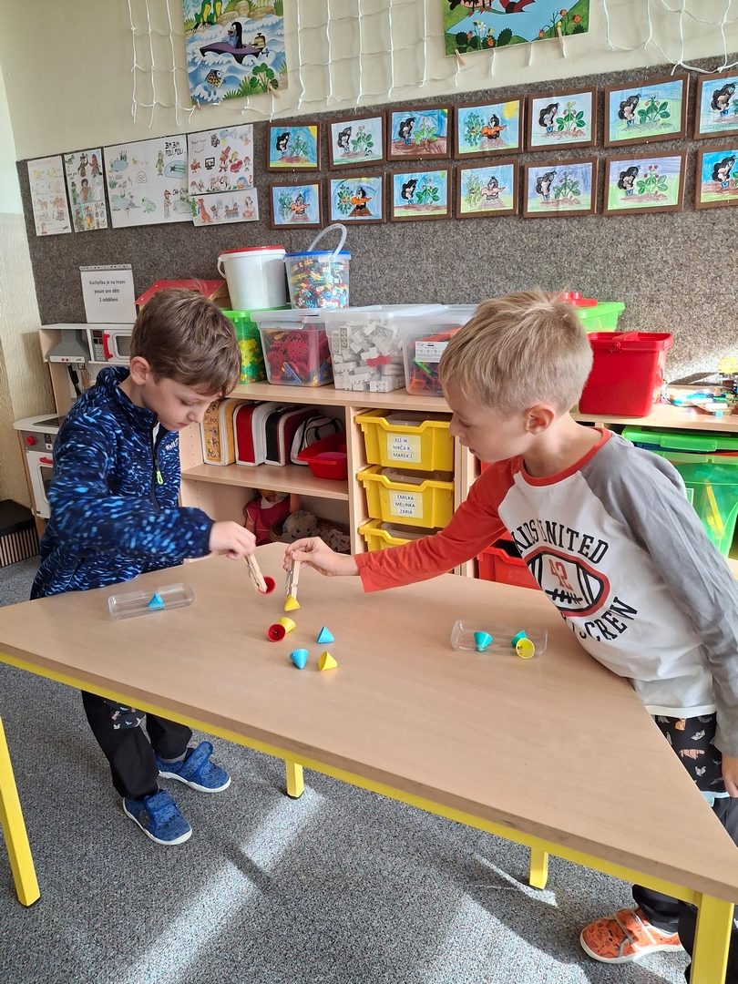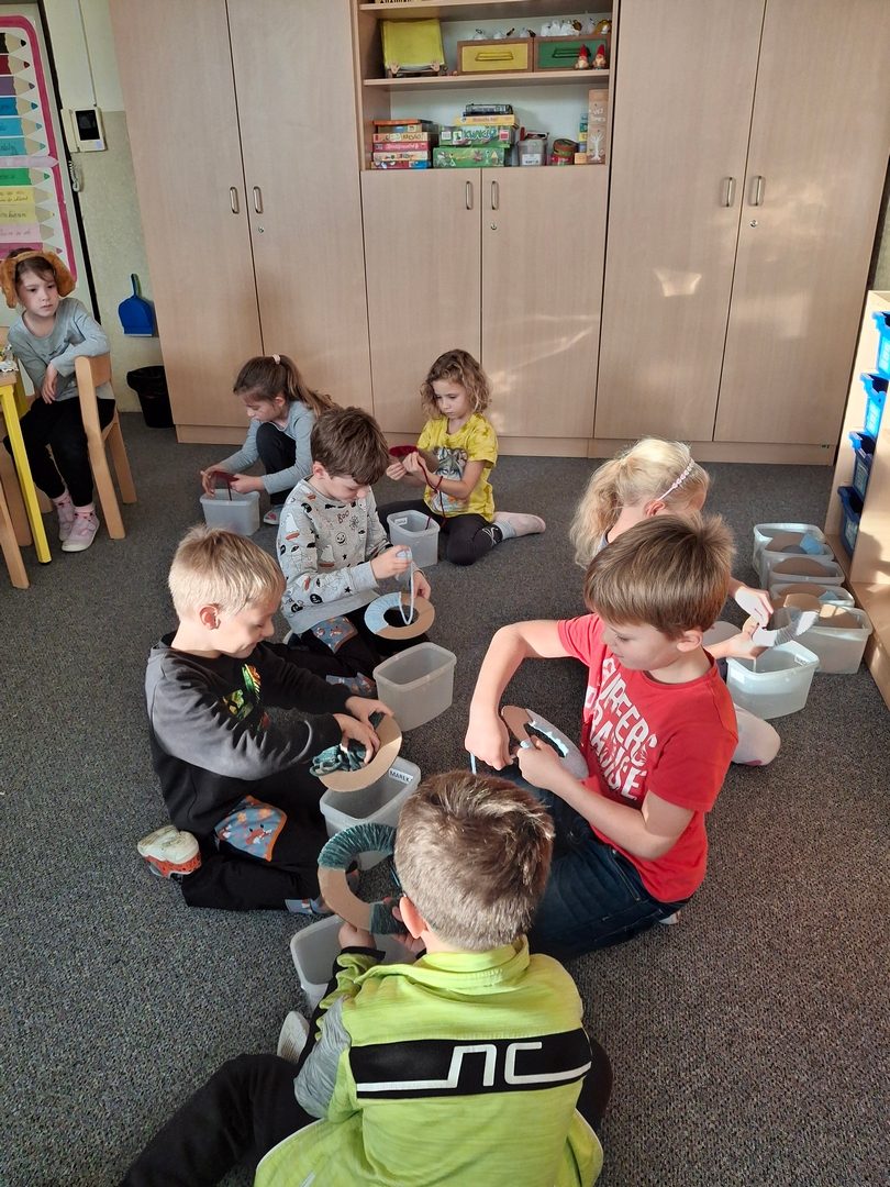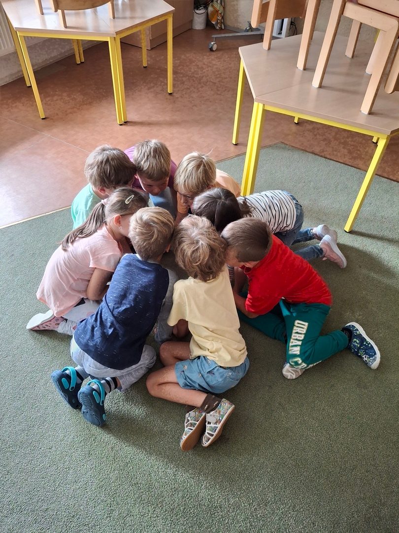 - hry ve třídě ( Zvířátka ze statku, Kompot, Poznávání kamarádů po hmatu nebo hlasu)