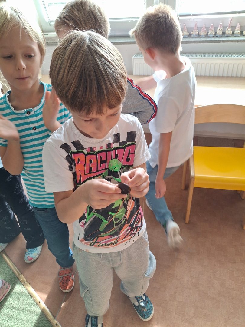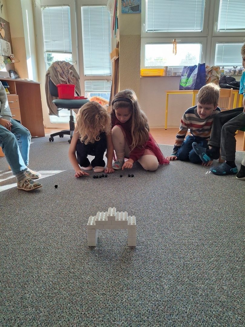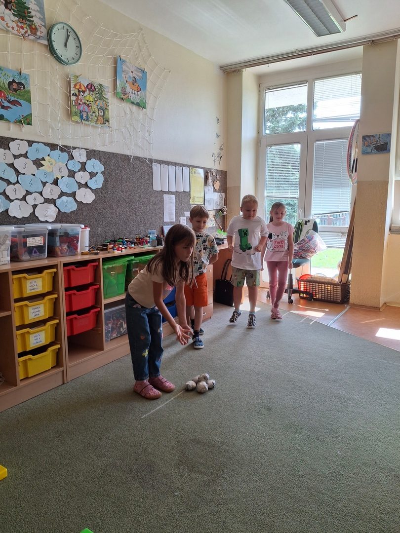 - hry ve třídě (foukání do kelímku, přetahovaná a lovení bonbonů, cvrnkání kuliček, přenášení kloboučků)