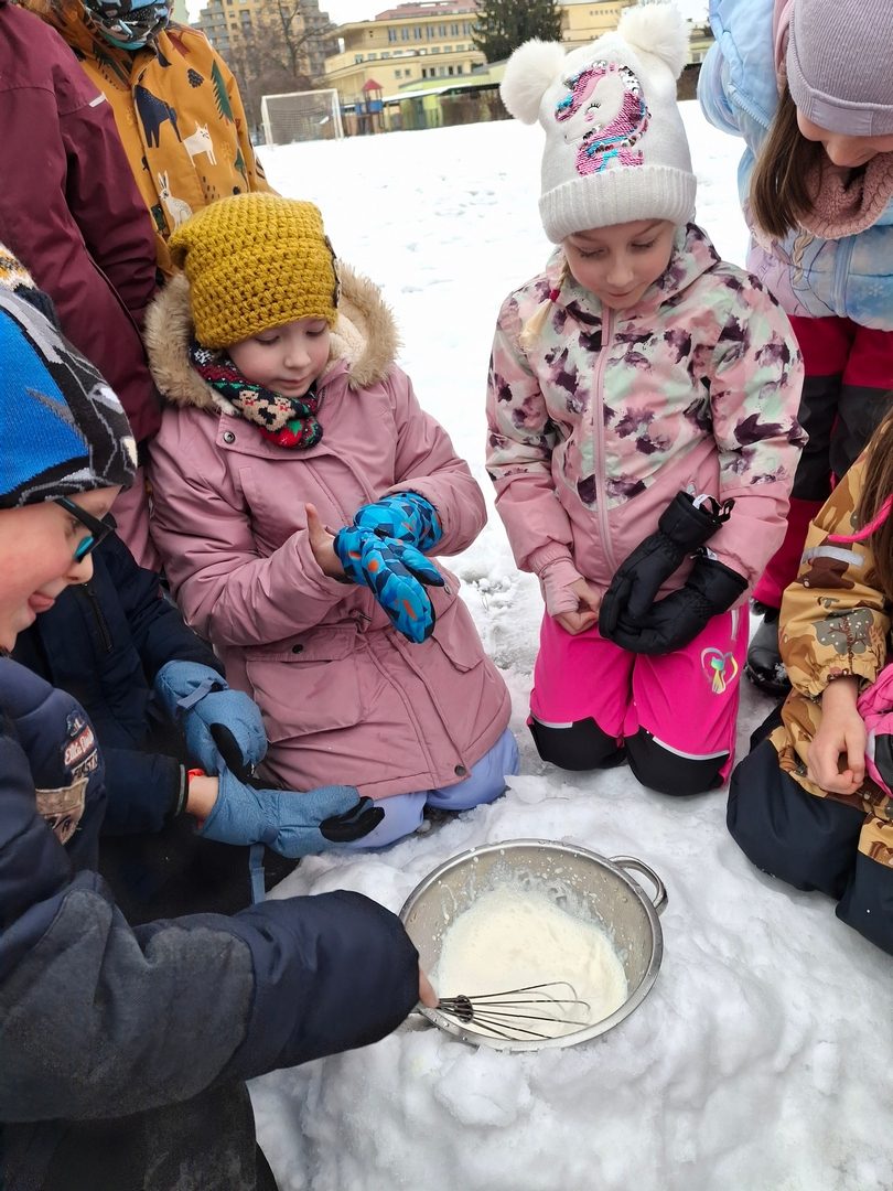 - vyrábíme zmrzlinu na sněhu