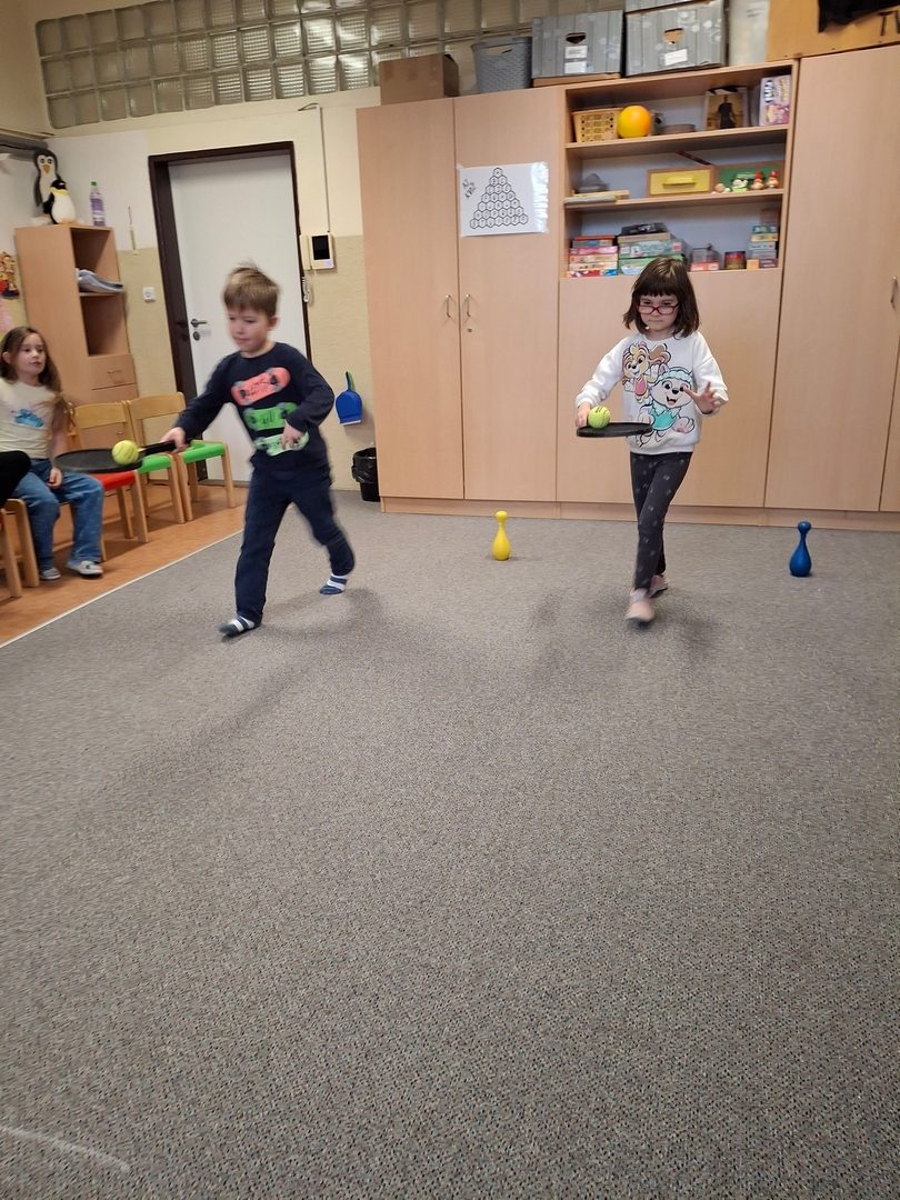 - soutěže ve třídě - závod autíček, indiánské kostky, kuličko HOP, překážková dráha, stopy