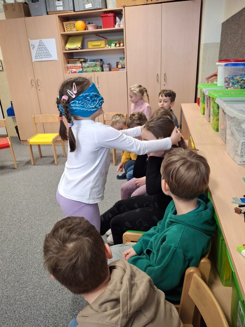 - hrajeme skupinové hry ve třídě- Hádej kdo jsem- hmatem, Uzel, Taneček v řadě- pantomima, Královská koruna