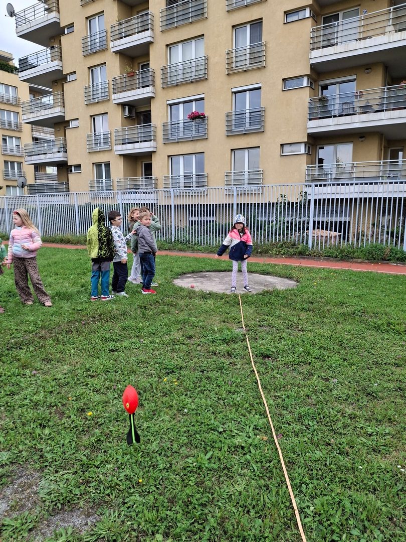 - soutěžíme v týmech - ŽOLÍK - sportovní soutěž (míček na lžičce, chůdy, hod do koše, kopání na branku)