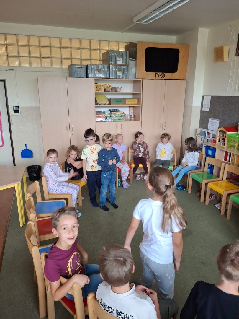 - hrajeme hry ve třídě ( Kompot, Na dirigenta, Tečka,čárka,vykřičník, Kohoutí zápasy)