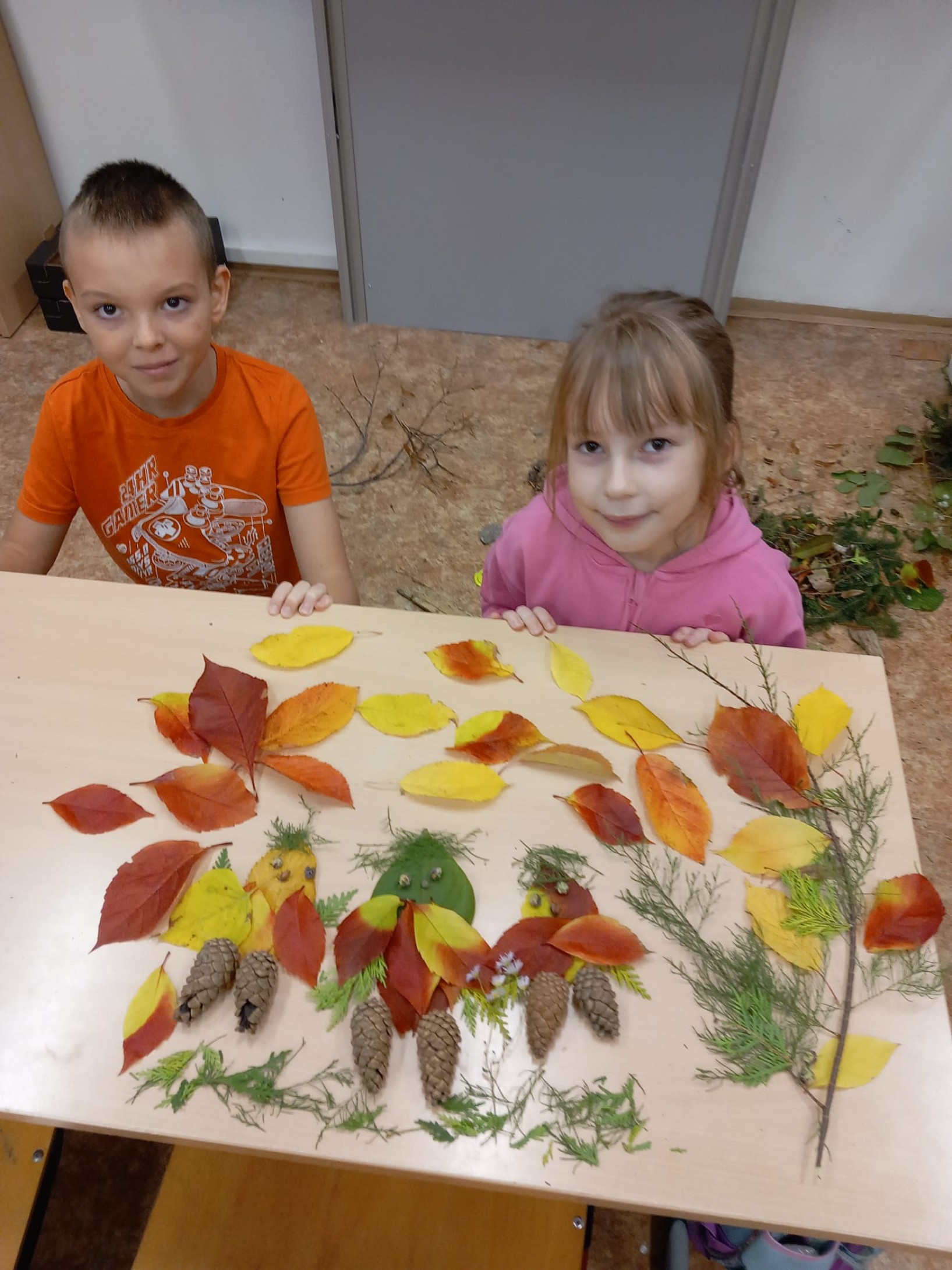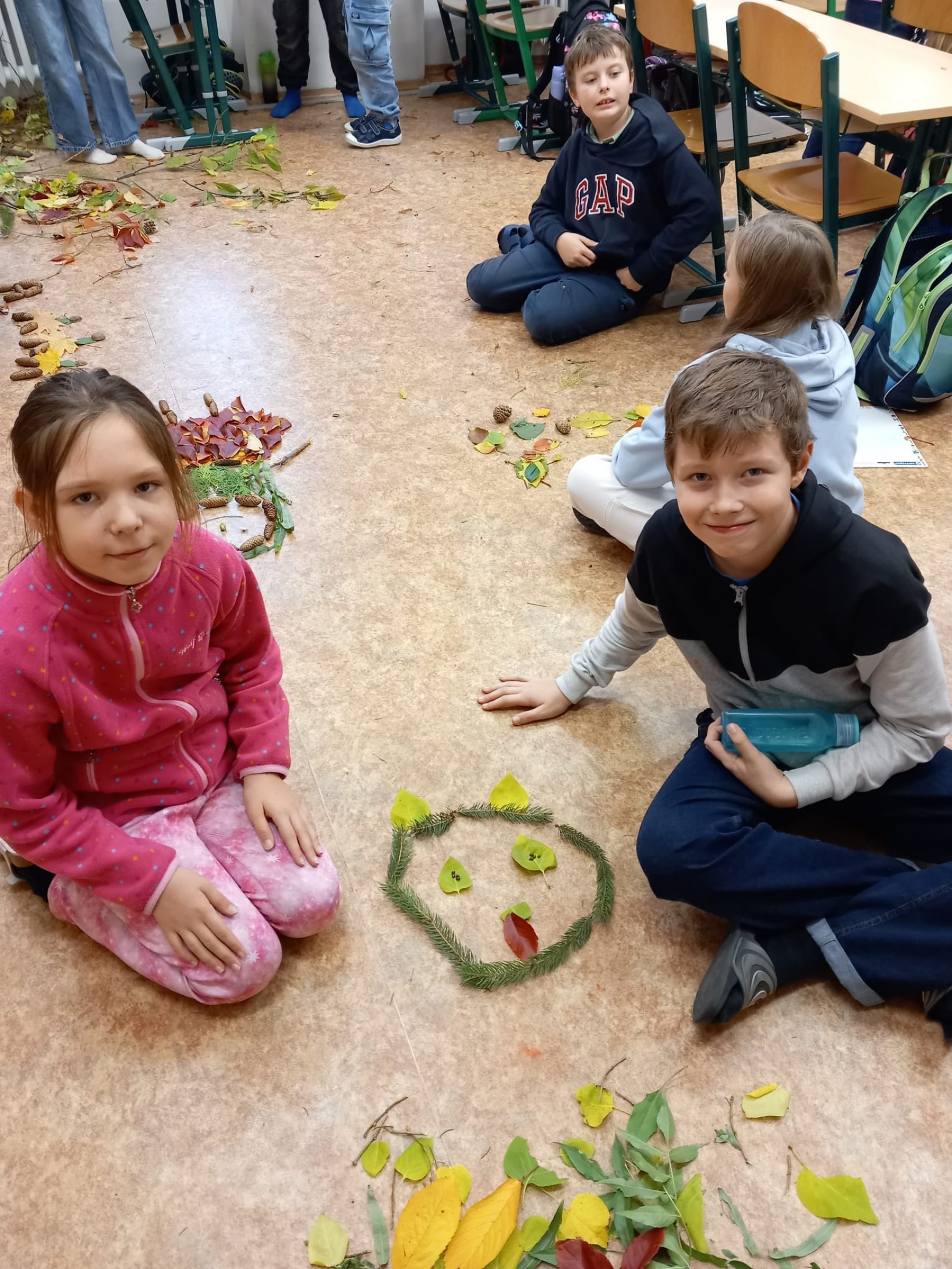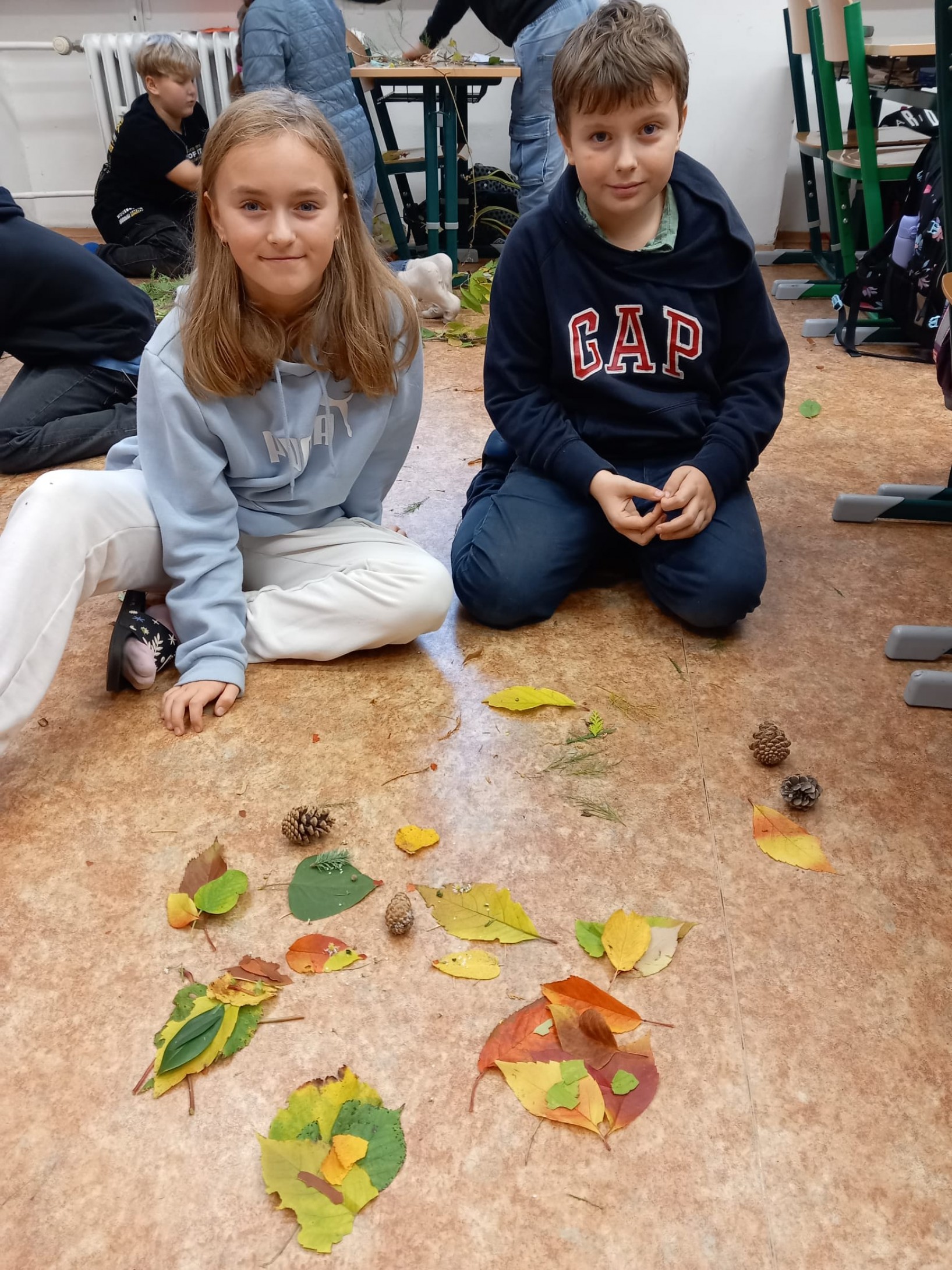 Co je lepší v tomto počasí, než přinést si do třídy kus přírody a hlavně barev? Děti ve dvojicích pracovaly s přírodním materiálem, který přinesly – listy, větvičky, šišky, skořápky ořechů, kamínky a další drobnosti. Společně vyráběly postavičky, ornamenty atd. Fantazie neměla hranic – každý tým si přinesl vlastní kreativní přístup a originální zpracování materiálu. Práce s listy, větvičkami a vším, co nám příroda poskytla, nás všechny moc bavila a byla skvělou příležitostí, jak si hravě vyzkoušet tvořivost a spolupráci.