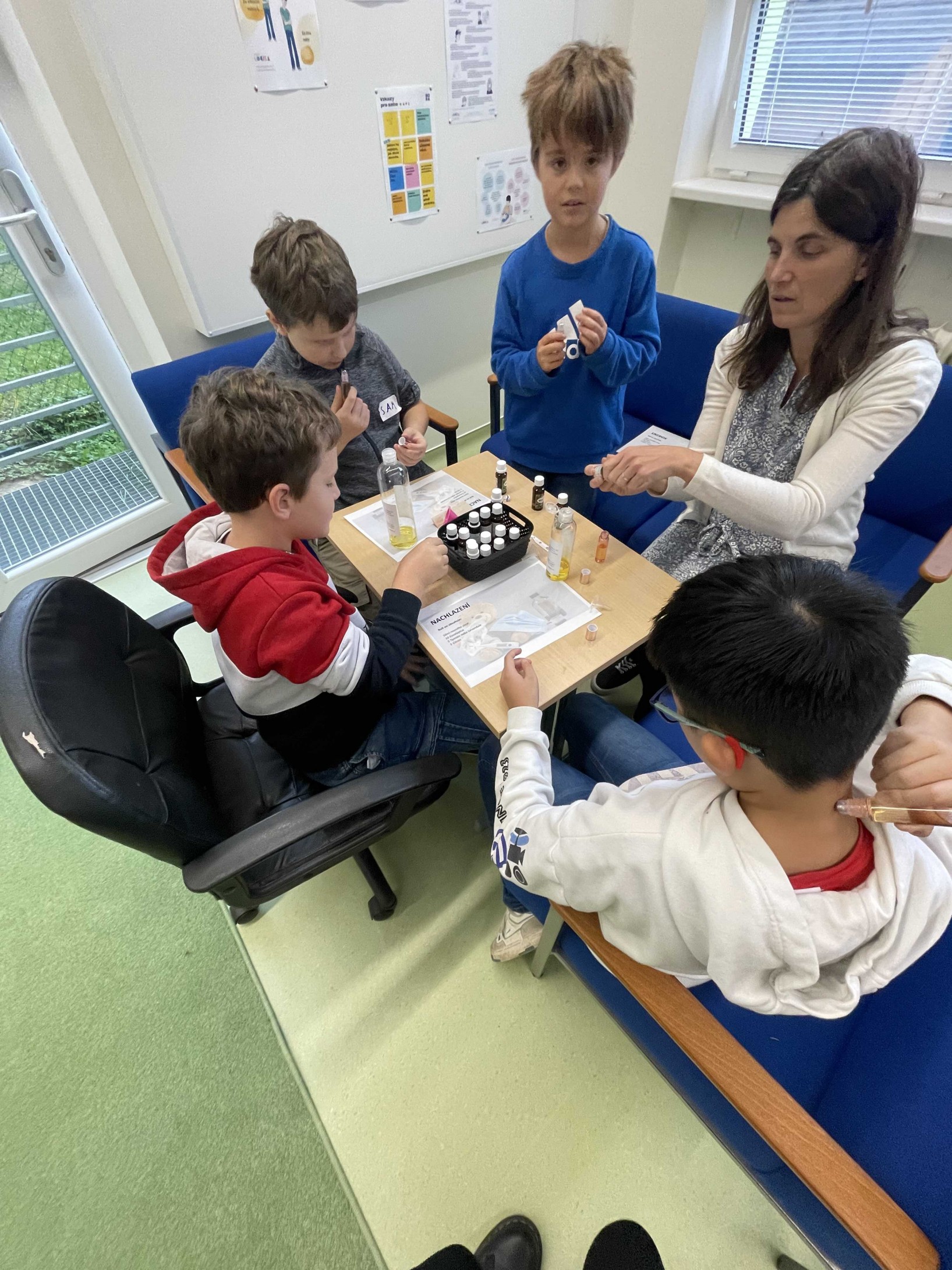 „Jé, ty olejíčky krásně voní!“ — přesně tahle věta se ozývala od každého stolu, když jsme se pustili do výroby vlastních vonných směsí. Děti si samy mohly namíchat originální kombinace esenciálních olejů, které pak vyzkoušely na vlastním těle. Dozvěděly se, k čemu nám mohou být některé vůně prospěšné, jak působí na naše tělo i náladu a co vlastně znamená aromaterapie – tedy léčba pomocí vůní. Každý si vytvořil směs podle svého vkusu – někdo zvolil oleje na imunitu, jiný pro dobrou náladu nebo oleje používané pro příval energie. Bylo úžasné sledovat, jak děti objevují svět vůní, experimentují a radují se z toho, co si samy vytvořily.