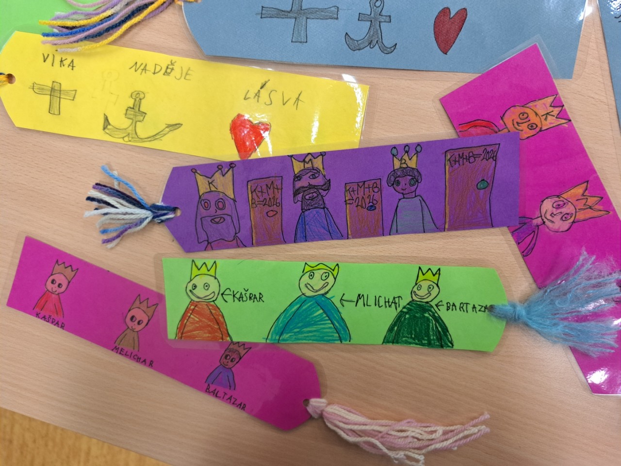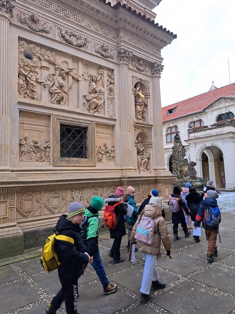 Začátkem ledna k nám přicházejí tři králové. Vyrábíme záložky do knihy s jejich jmény. Vyprávíme si o významu křesťanských symbolů, se kterými jsme se seznámili při hledání loretánského pokladu v Loretě, jsou to: víra, naděje, láska. V Loretě jsme plnili úkoly a dozvěděli jsme se mnoho zajímavých věcí: např. co je to reliéf, monstrance, poutní místo, oltář a také, že zvonkohra na věži má 27 zvonů. Navštívili jsme betlém u bratří kapucínů. Jeden týden jsme se věnovali zdravým a nezdravým potravinám, vysvětlili jsme se co je „výživový talíř“, co našemu tělu nejvíce škodí, jak rozdělujeme potraviny: na cukry, tuky, bílkoviny apod. Ochutnávali jsme zdravé, ale i nezdravé potraviny. Na vycházce kolem Hamerského rybníka jsme pozorovali přezimující ptáčky.