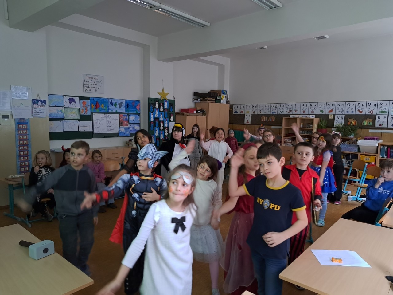 Děti milují kostými a převleky. Při halloweenské party jsme si užili tanec, soutěže i předvádění masek. Vyráběli jsme z keramické hlíny dýně a papírové netopýry. Navštívili jsme Botanickou zahradu v Tróji, kde byla halloweenská výstava dýní všeho druhu.
