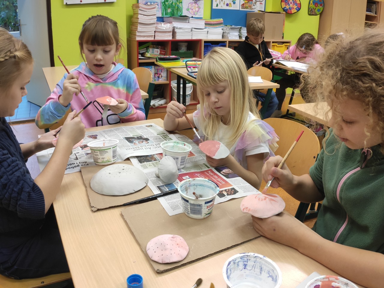 Venku jsme využili krásného podzimního počasí, hráli jsme různé pohybové hry, hrabali listí a pozorovali proměny přírody – sledovali jsme, jak se mění stromy kolem nás. V říjnu ve školách startují kroužky, a tak si děti užívaly každou volnou chvilku, kterou mohly běhat venku. Na Světový den pošty 9.10. jsme si povídali o tom, jak funguje pošta dnes i jak fungovala dříve. Když pošta, tak Pošťácká pohádka od Karla Čapka. Četli jsme a povídali jsme si o tomto povolání. V rámci projektu „ Máme rádi Česko“ jsme četli z knihy,, Co má vědět správný Čech" - Volby. Připomněli jsme si významný státní svátek – Den vzniku samostatného Československa 28. října 1918.