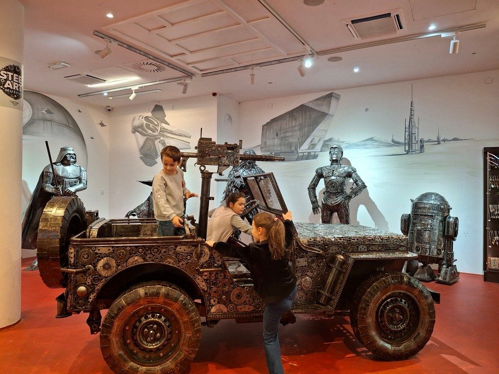 Využili jsme možnosti čerpat příspěvek na kulturní akci a zamluvili si návštěvu interaktivní galerie ocelových figurín. Děti z 2. oddělení ŠD si to tam hodně užily, protože mohly úplně všechno. Sahat, používat a do aut si i sednout. Výstava je fantastická.
