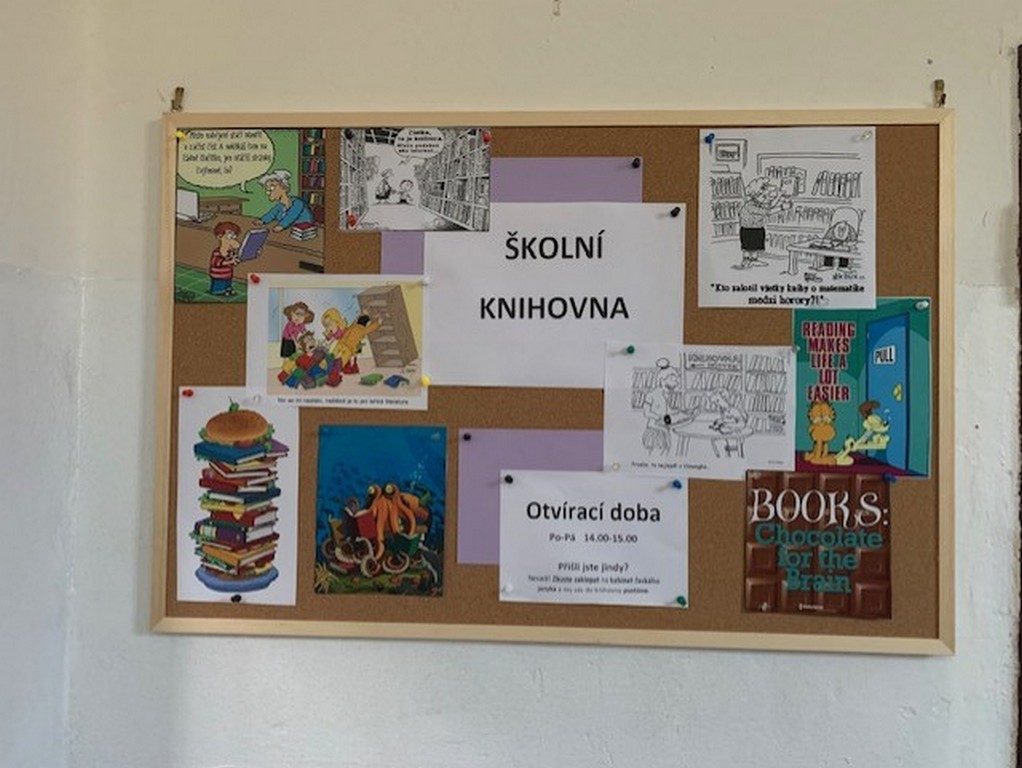 Ve školním roce 2025/26 jsme si splnili náš dlouholetý češtinářský sen. V září jsme konečně získali vhodný prostor pro novou školní knihovnu! Podařilo se nám vytvořit útulný prostor, díky kterému získaly čtenářské dílny v hodinách literatury úplně jiné kouzlo. Chodíme číst často a rádi! Děkujeme chlapcům z osmých a devátých tříd, kteří pomáhali při stěhování knih. Děkujeme dívkám ze sedmých a devátých tříd, které pomohly s výzdobou, a děkujeme i rodičům našich žáků, kteří v loňské knižní sbírce výrazným způsobem přispěli k oživení a rozšíření knižního fondu. Věříme, že školní knihovna bude hojně využívána a bude dětem přinášet nejen poučení, ale hlavně radost.