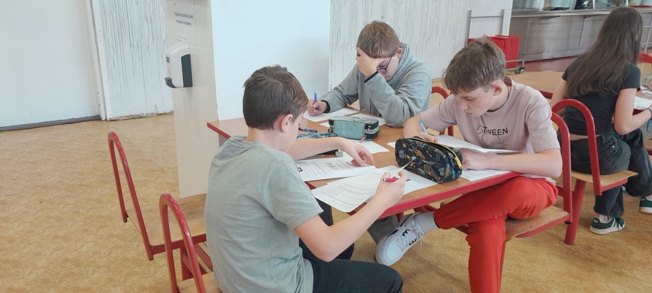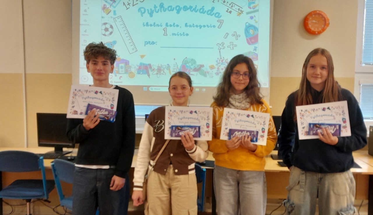15.10.2025Ve středu 15. října se ve školní jídelně sešlo 44 talentovaných matematiků z druhého stupně, aby poměřili své matematické dovednosti v oblíbené soutěži Pythagoriáda. Účastníky čekalo 15 logických a početních úloh různé obtížnosti, které prověřily nejen jejich znalosti, ale i bystré myšlení a trpělivost. Atmosféra byla plná soustředění, napětí i radosti z objevování správných řešení. A jak to celé dopadlo? Na prvních místech se umístili ti nejlepší z nejlepších: Karin Řezníčková, 6.C, Zuzana Fürbachová, 7.C, Kateřina Zákoutská, 8.C a Ivan Ohar, 9.C. Gratulujeme všem úspěšným řešitelům a děkujeme všem zúčastněným za skvělý výkon i nasazení! Do dalšího kola postupují: Zuzana Fürbachová, Kateřina Zákoutská, Ivan Ohar.
