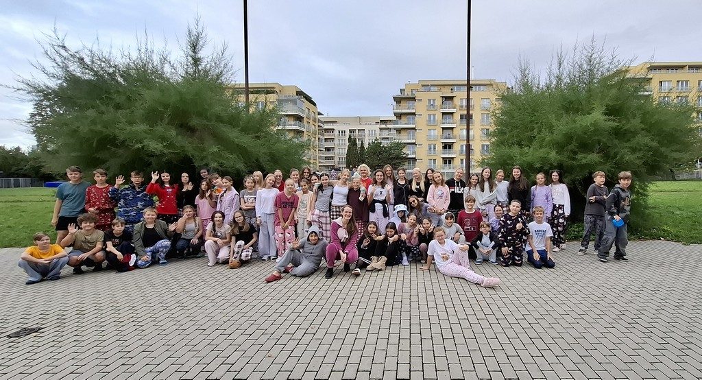 Dnešní pátek se nesl v opravdu netradičním duchu – tématem bylo pyžamo! Akce byla zcela dobrovolná, ale zájem byl překvapivě velký. Iniciativu odstartovaly třídy 6.B a 6.C, které se do pyžamového dne pustily s nadšením a vtipem. Jejich nápad se rychle rozšířil i mezi ostatní, a tak se k nim postupně přidávali žáci sedmých a osmých tříd. Po celé škole tak dnes bylo možné potkat nejrůznější postavy a pyžamové outfity – od plyšové koaly, šedého medvídka a bílé bezzubky, přes Hello Kitty, vánoční i pejskové komplety, až po Cookie Monstera, červeného perníčka, růžového jednorožce a celou řadu kostkovaných i veselých pyžam. Účastníci svými úsměvy rozzářili páteční ráno, které by jinak možná bylo trochu ospalé a zamračené.
