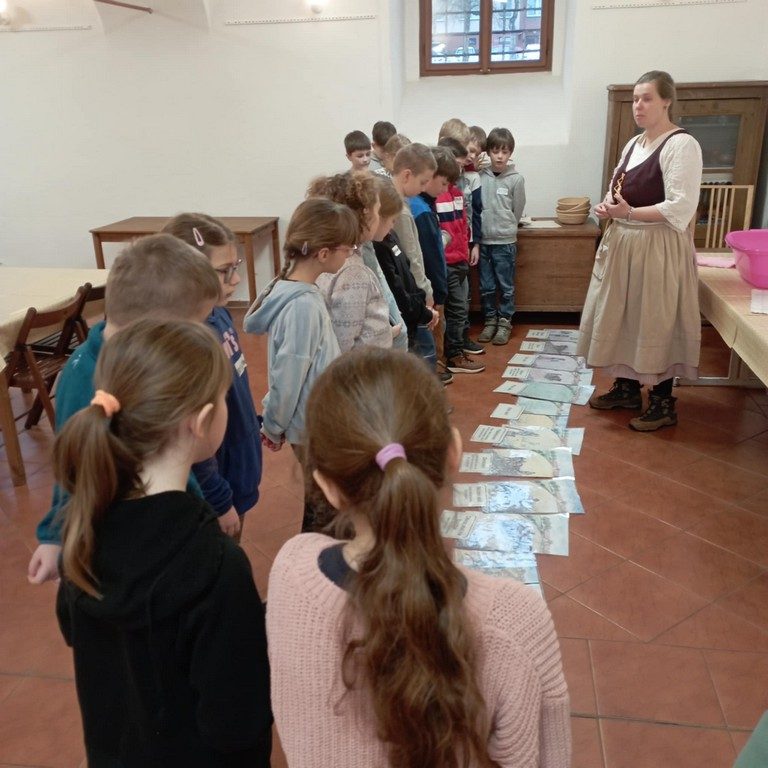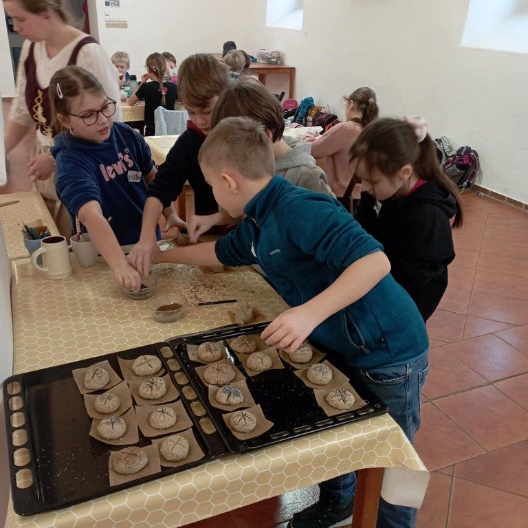 03.02.2026Žáci 3.A měli možnost poznat nejen teoreticky, ale také prakticky, jaký proces předchází k upečení chleba. Naučný pořad v Toulcově dvoře byl zaměřený na dávné doby, kdy nebyla téměř žádná mechanizace. Cesta ke chlebu začala uspořádáním obrázků od výsevu po sklizeň obilí, pak si každý mohl vyzkoušet mlácení pšenice cepem, zrno umlít na mlýnku a také vlastníma rukama zamíchat těsto s kváskem, který připravila lektorka programu. Z těsta vytvořili chlebový bochánek a před pečením ochutili mákem nebo kmínem a solí. Upečený bochánek si všichni odnesli domů a s rodiči si na vlastním výrobku pochutnali. V celém dopoledním programu žáci získávali spoustu nových informací a dovedností a také představu o hospodaření se surovinami, které jsou pro život důležité.