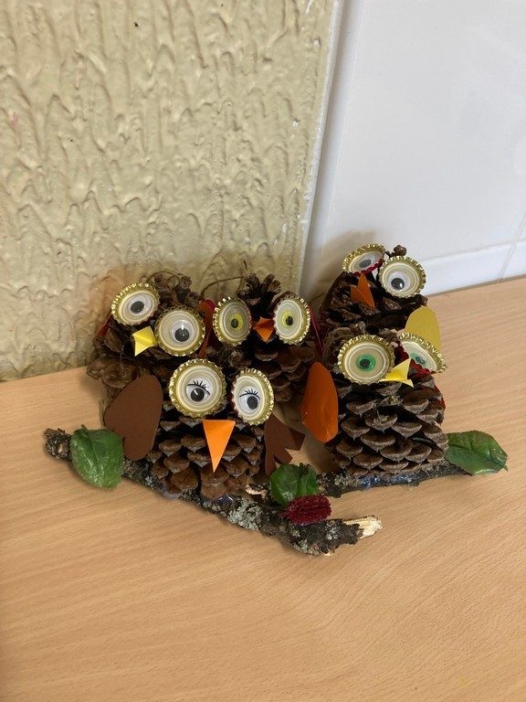 - vyrábíme sovu (pracujeme s přírodním materiálem)
