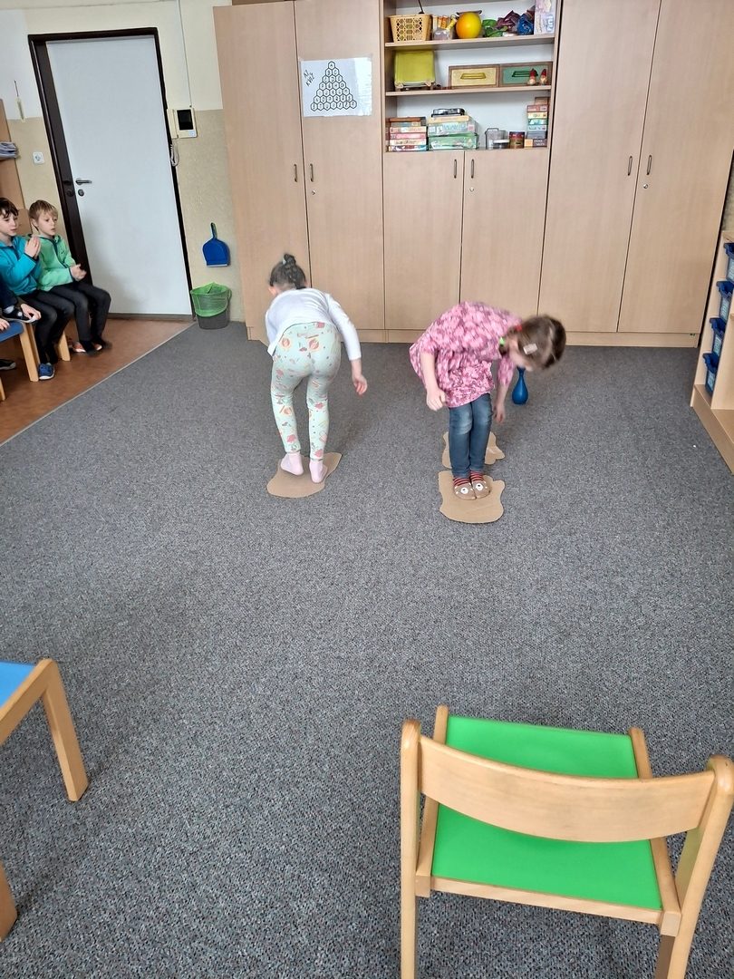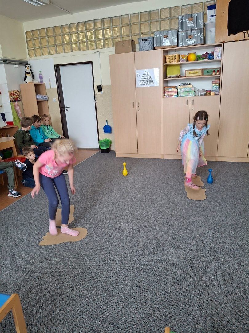 - hry ve třídě: Na mrkanou, Křídla,kořeny,končetiny,Lovení bonbónů, hod kuličky do kloboučku, pyramida z kelímků