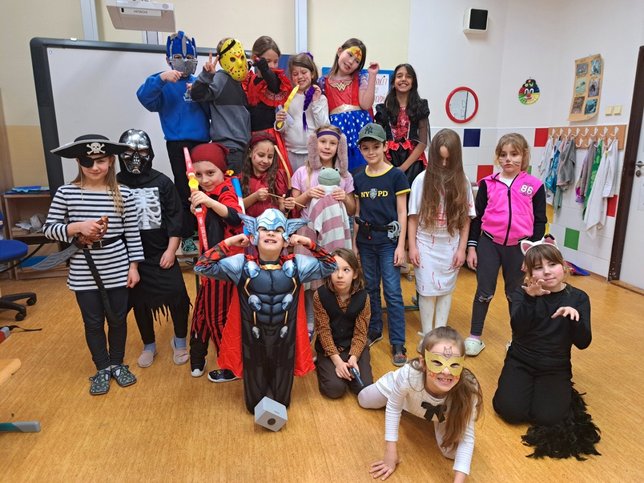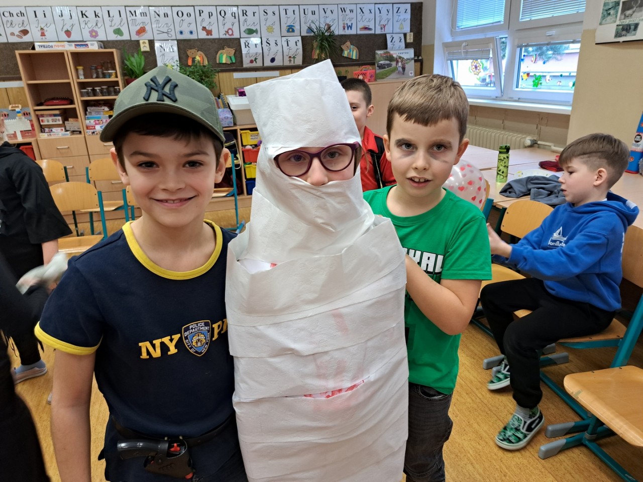 Děti milují kostými a převleky. Při halloweenské party jsme si užili tanec, soutěže i předvádění masek. Vyráběli jsme z keramické hlíny dýně a papírové netopýry. Navštívili jsme Botanickou zahradu v Tróji, kde byla halloweenská výstava dýní všeho druhu.