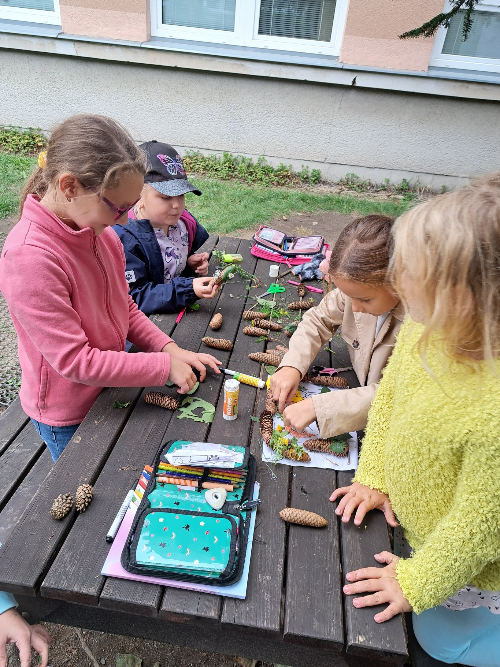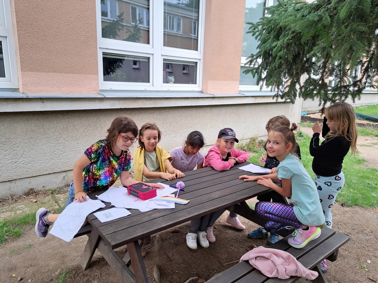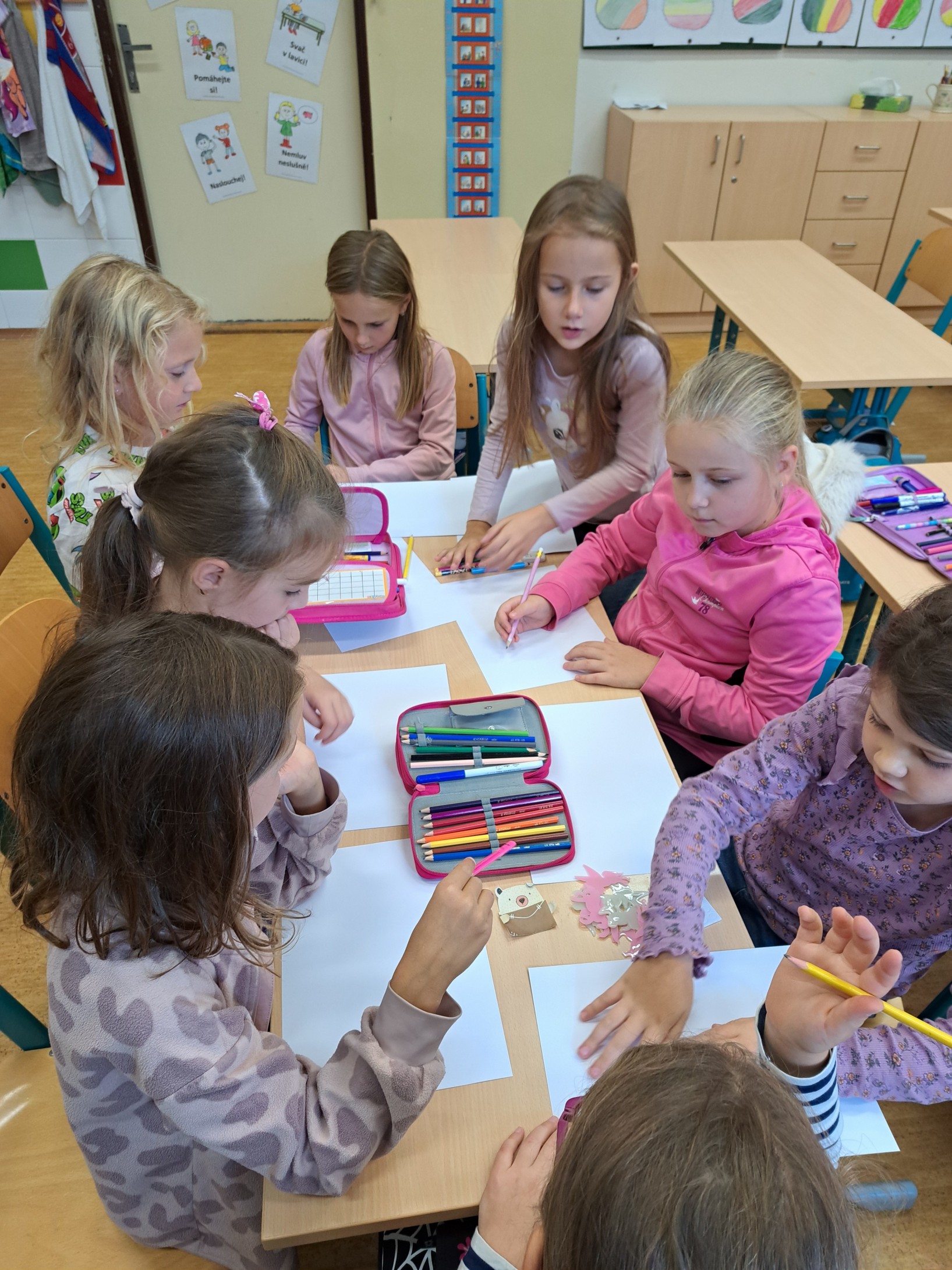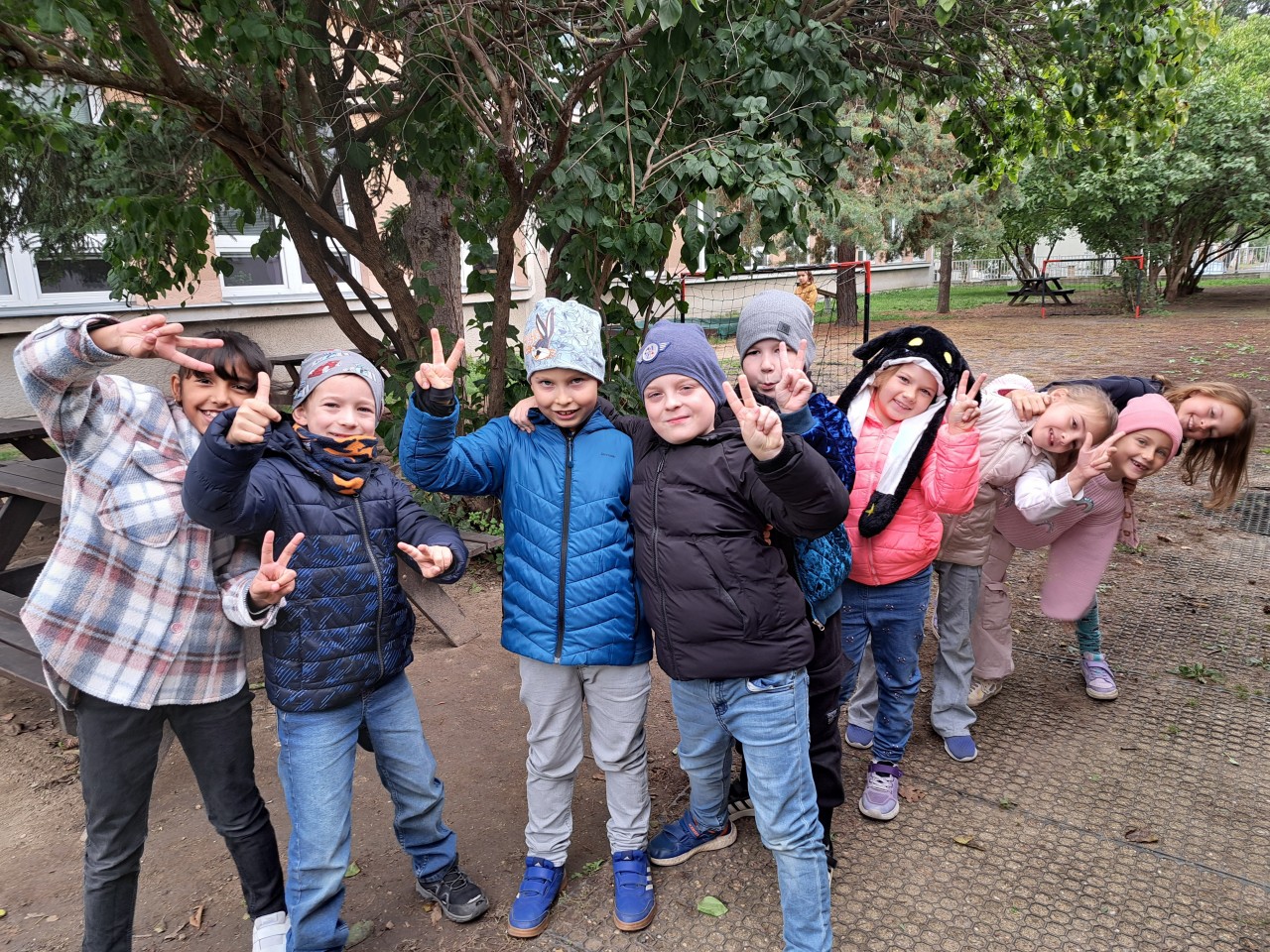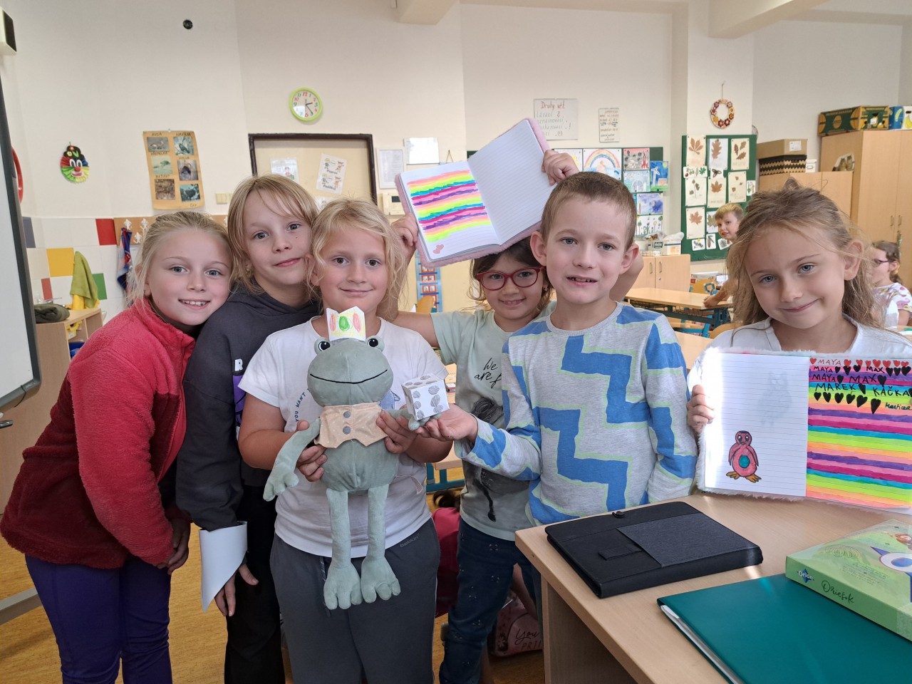 V září pobýváme co nejvíce venku na školní zahradě. Hrajeme pohybové a míčové hry, učíme se skákat přes švihadlo. Seznamujeme se s žabákem Hráškem, který nás bude provázet ve třídě celý školní rok a o víkendech bude s námi jezdit na výlety. O dobrodružstvích s Hráškem píšeme deník. Stanovili jsme si pravidla celoroční hry „Honba za diamanty“. Luštíme křížovky, osmisměrky, kvízy na přírodovědu, dopravní výchovu, vyrábíme, sportujeme, prezentujeme doma přečtené knihy, počítáme složitější příklady apod. V oblibě máme situační hry, kdy fantazie dětem rozhodně nechybí a všichni se společně hodně nasmějeme.