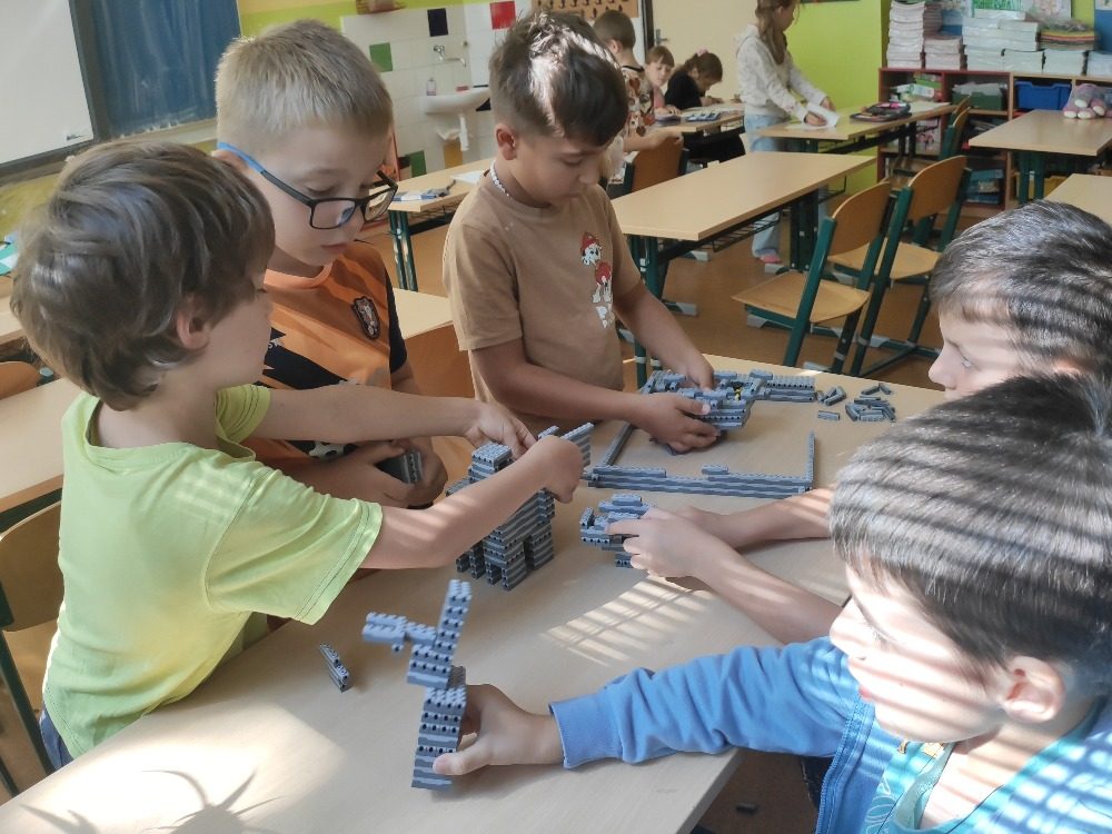 Využili jsme krásného podzimního počasí a hodně času jsme trávili venku na školním hřišti. Děti si oblíbily různé hry s míčem (fotbal, vyvolávaná, vybíjená), stavěly hrady z písku.