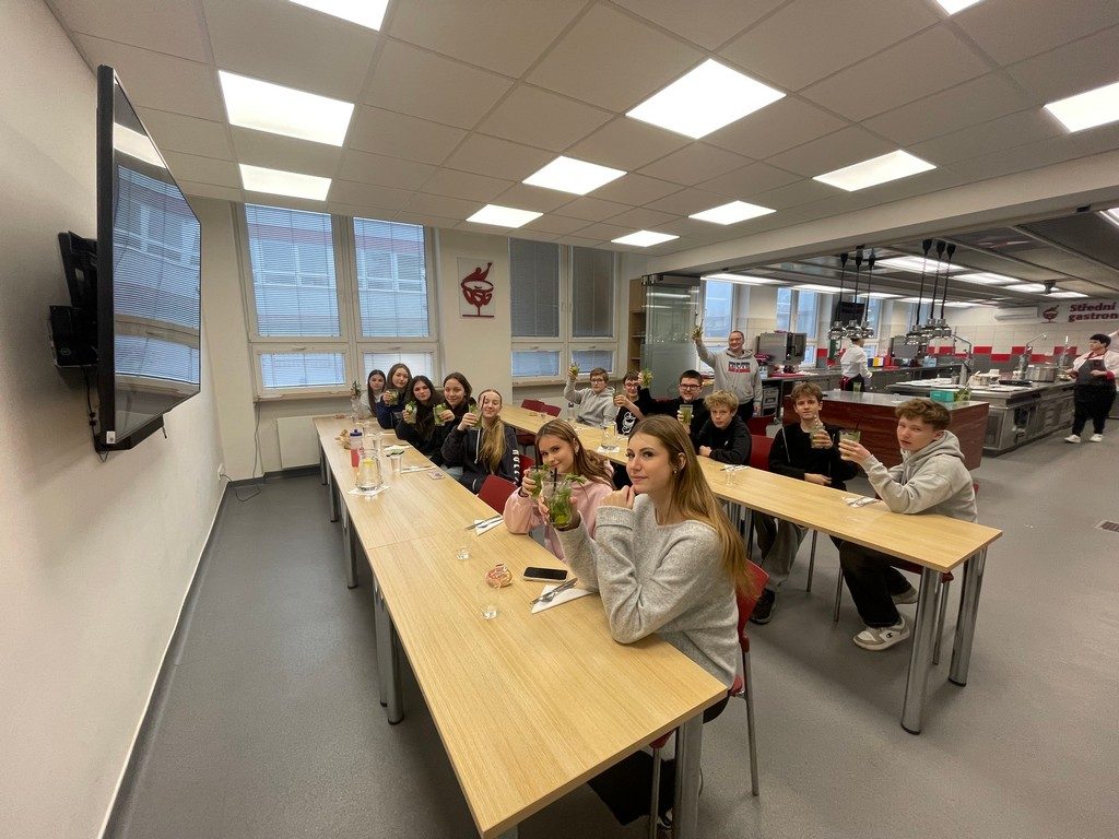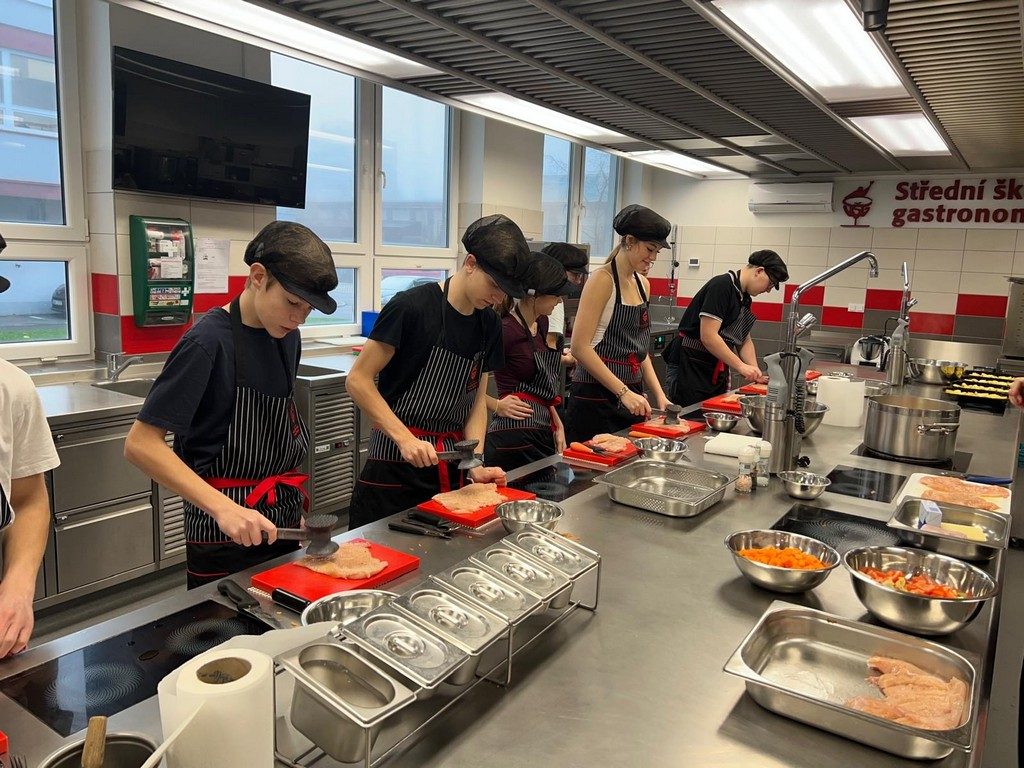 Žáci tříd 9. B a 9. C se v rámci projektu polytechnická hnízda zúčastnili návštěvy Střední gastronomické školy U Krbu, kde měli možnost seznámit se s prostředím odborného vzdělávání v oblasti gastronomie a služeb. Během praktické části si žáci vyzkoušeli různé činnosti, které jsou součástí výuky budoucích kuchařů, cukrářů a číšníků. Připravili si nealkoholické virgin mojito, zapojili se do pečení cukroví a pod vedením pedagogů školy uvařili kuřecí roládu s bramborami, dýňovým a květákovým pyré. Práce probíhala v týmech a žáci si mohli vyzkoušet základní postupy i organizaci práce v profesionální kuchyni. Součástí programu byla také prohlídka školy, během které se žáci dozvěděli informace o studijních oborech, zázemí školy a jejím fungování. Představeny byly rovněž úspěchy školy v odborných soutěžích, zapojení žáků do chodu školy i možnosti, které SGŠ U Krbu svým studentům nabízí.